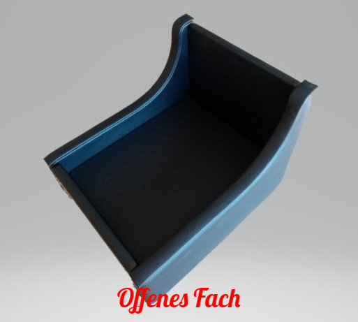 Pour une console centrale parfaite, j'ai conçu une extension qui va jusqu'au siège arrière. Ici, comme pour la console centrale, différents éléments peuvent être combinés pour créer une extension individuelle adaptée à votre console centrale. Créez simplement votre propre extension dans le configurateur. L'extension est simplement fixée à la console centrale existante à l'aide de deux vis.